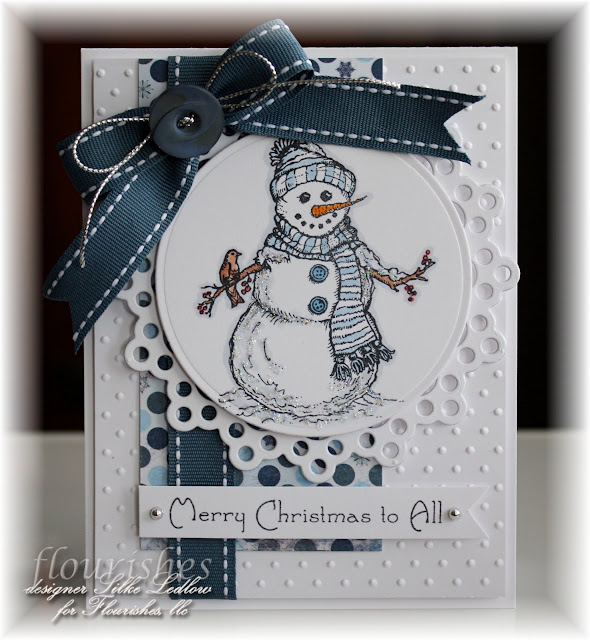 I LOVE all the dots!!! That doily die is so pretty and all the dots and circles go so well with that round bodied snowman. Beautiful bow.