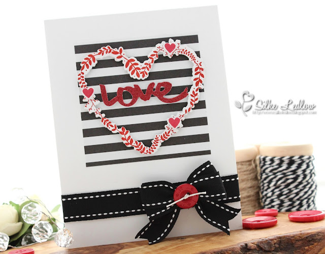 Others: PTI - To Have and To Hold Dies, PTI - XOXO Die, PTI Black Striped Ribbon, Red Button, White Scrapper's Floss